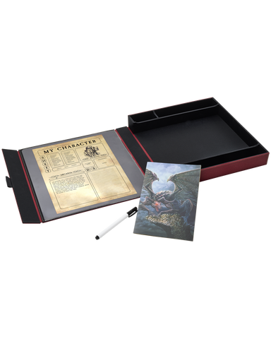 The Player Companion doubles as your play area, fold it out and roll dice in the dice tray for a satisfying sounding roll. Place your character sheet under the overlay and use the included dry erase marker to track HP, inspiration or death saves without marking your character sheet directly. You can easily wipe clean and re-write on the overlay.