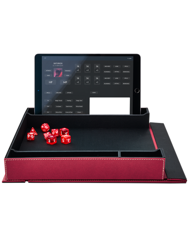 Do you use digital character sheets on a mobile phone or tablet? Use the included foam blocks and place it in the miniature compartment to rest at the perfect viewing angle while playing. The Companion can be folded if table space is tight.